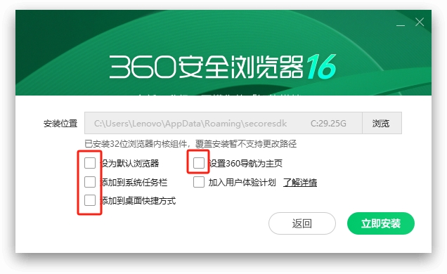 首先下载安装包后,运行安装程序,在弹出的窗口别急着立即安装,先点击自定义安装